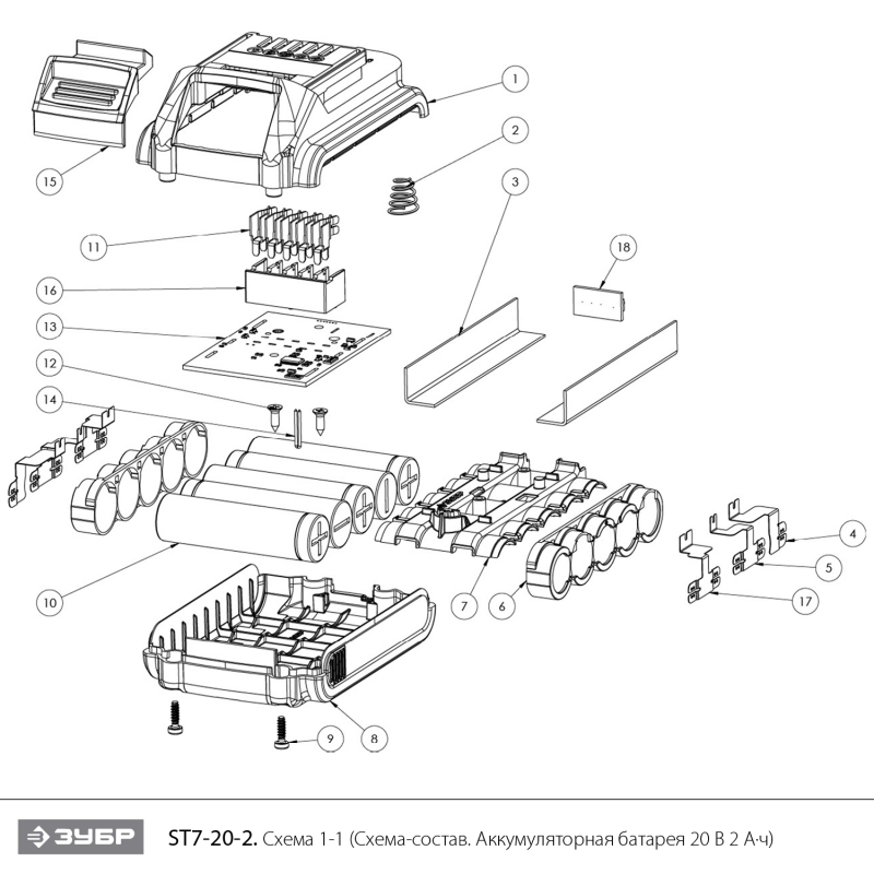 Аккумуляторная батарея Li-Ion, 20 В, 2 Ач, тип T7