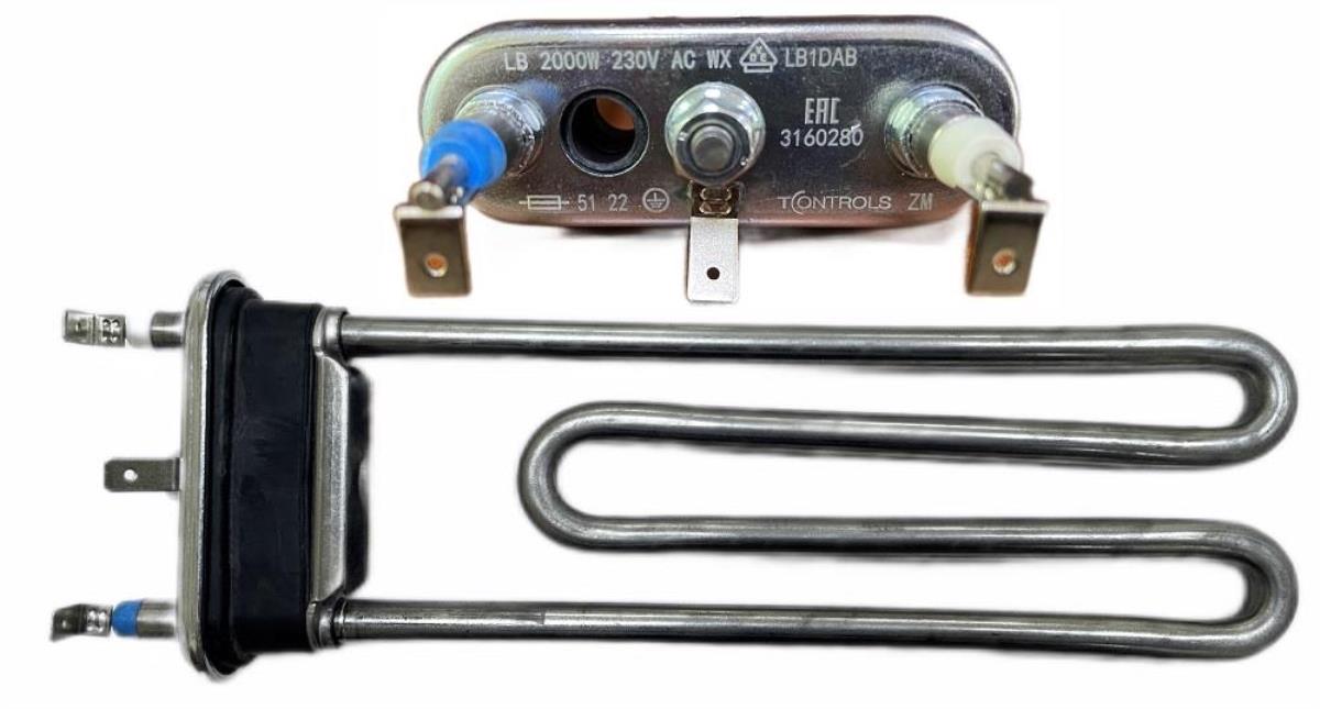 ТЭН 2000W, средний, L-200 mm|прямой|c отверcтием| универсальный T-CONTROLS by Thermowatt (60 шт|кор) (BOSCH 267512 12040670 8011444 )